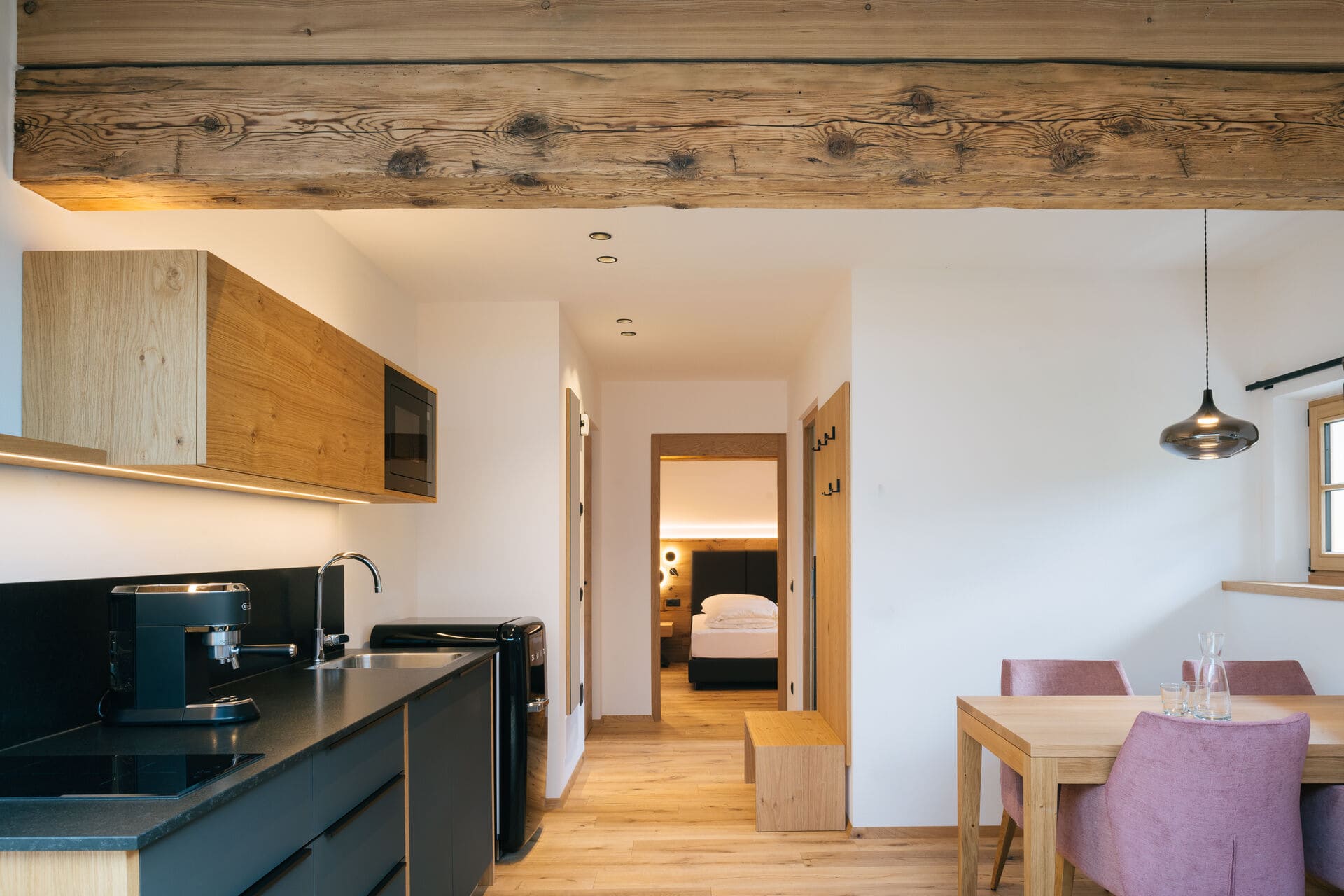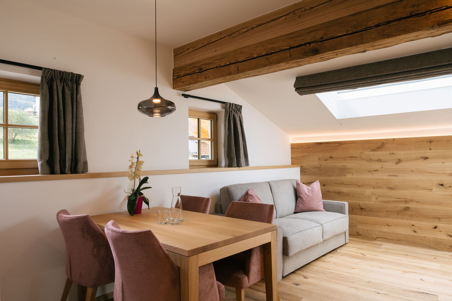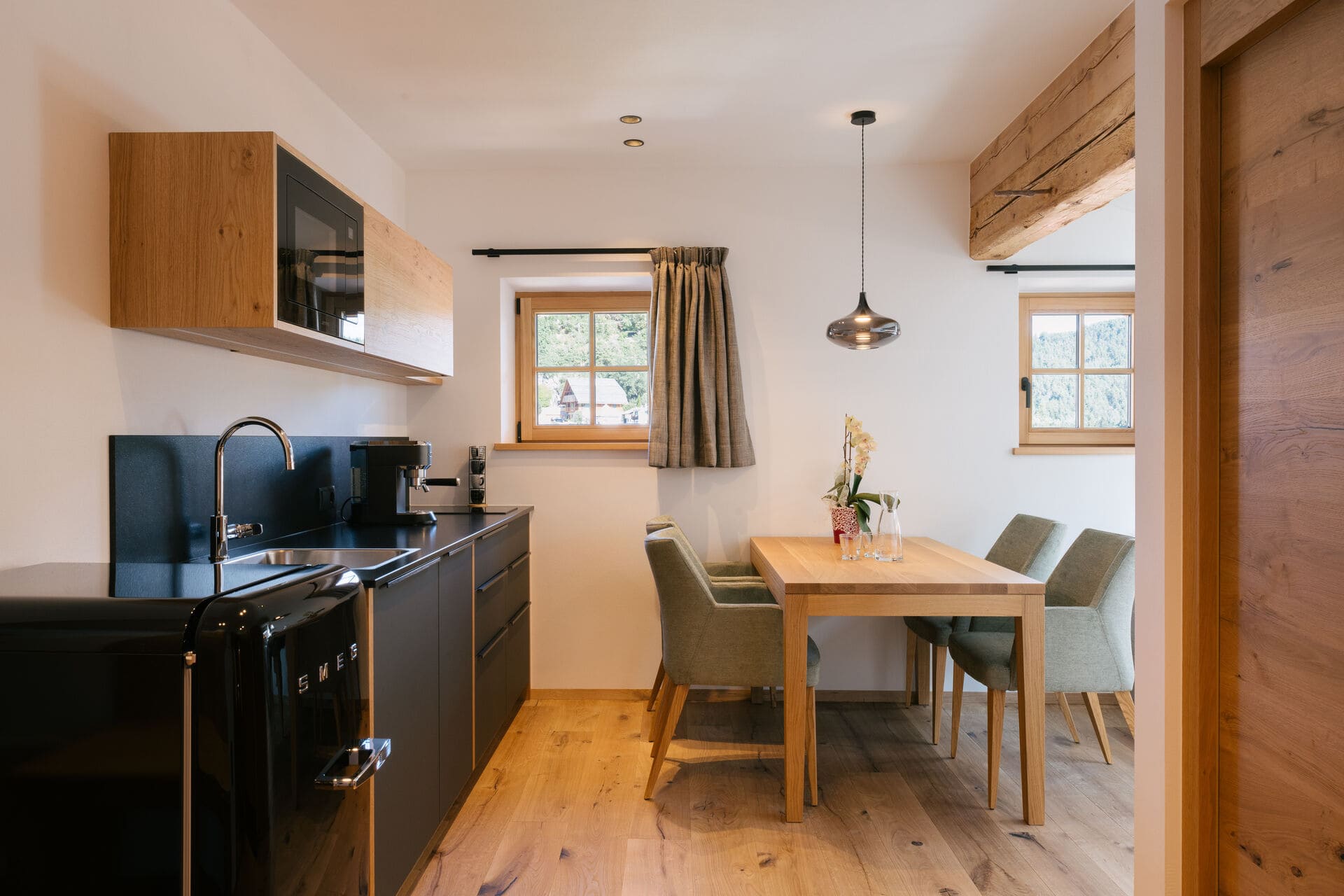 Ganz oben, im 3. Stock, hast du die beste Aussicht und bist nah am Sonnenlicht. Für Wohlfühl-Atmosphäre sorgt das moderne Interieur aus Eichenholz – und natürlich du mit deinen Lieben. Auch sonst ist alles da, was dir den Urlaub angenehm macht. Bitte beachte: Hinauf geht’s nur Schritt für Schritt, in unserem denkmalgeschätzten Hof gibt’s keinen Aufzug.