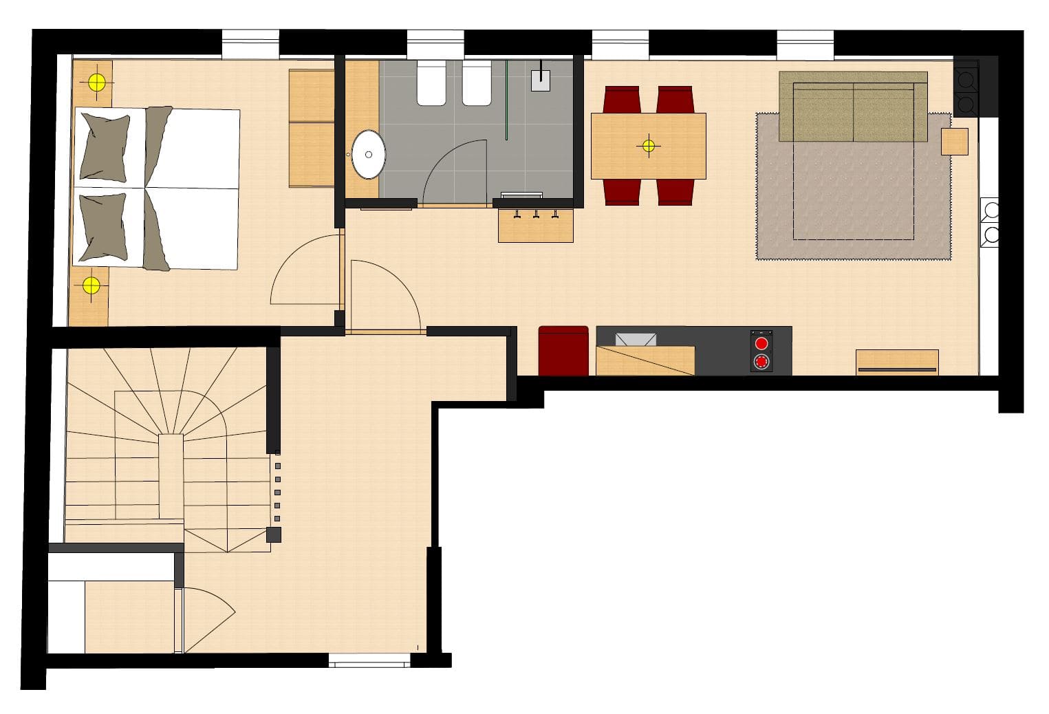 • Holzboden mit Bodenheizung